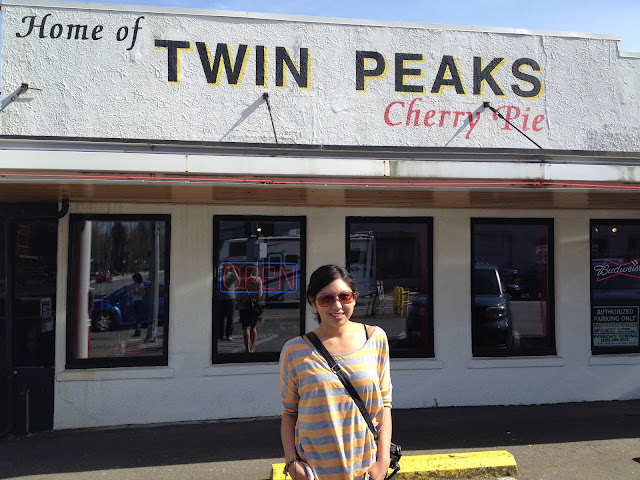 Any of you who had grown up in our era (and we're not disclosing our age...you'll just have to guess)...there was a popular TV series in North America called Twin Peaks. We had stumbled on to this cafe on a road trip that had started out as a day trip to hike Snoqualmie Falls. But we arrived at the falls only to find out the trail is closed until summer 2013!